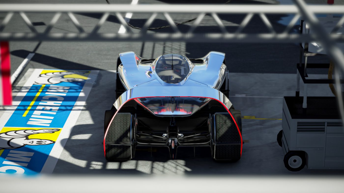 The Whaaam DTW features an active aero and energy recovery system coupled with 4 flaps (ingame feature) that act as airbrakes during braking phases. These flaps capture air, compress it and send it to a Tesla turbine mounted behind the cockpit. The DTW also features wheels with 3D-printed bearing strips to adapt to changing surfaces or racing conditions in real time.